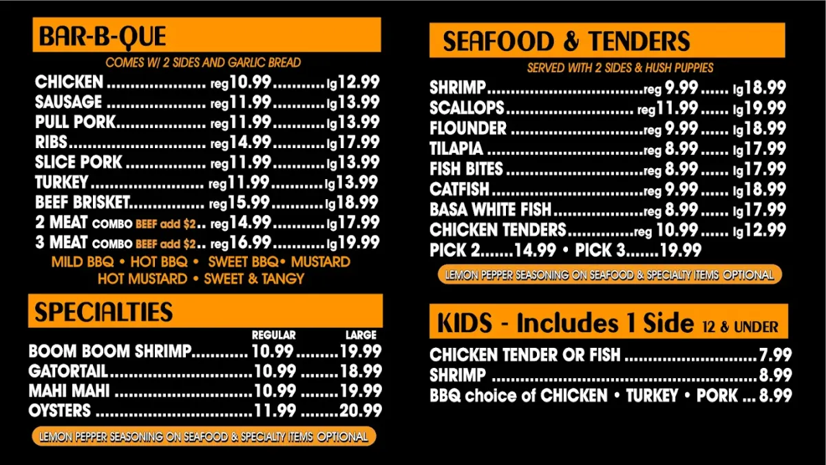 BBQ, Seafood & Wings Made Fresh Daily